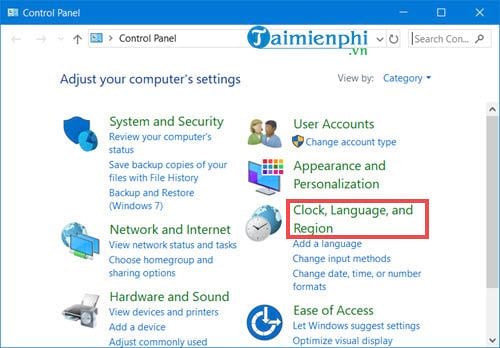 Bước 2: Trong phần Control Panel bạn nhìn xuống chọn Clock, Language, and Region. Ở đây sẽ cho phép chúng ta đổi dấu phẩy thành dấu chấm trong Win.
