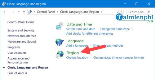 Bước 3: Trong mục Clock, Language, and Region lựa chọn tiếp Region.